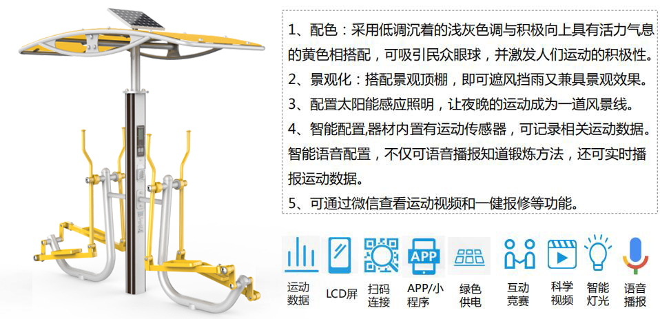 快盈VIII全民健身产品涵盖健身路径、运动场馆、篮乒气羽排等产品,分为多个系列,先进的制造工艺、严苛的质量检测,确保产品性能优良、品质安全可靠,让运动简单科学。并将全民健身器材(户外路径器材、体育场馆等产品)进行智能化升级和互联,实现全人群覆盖、全场景智能,让运动赞美生活。