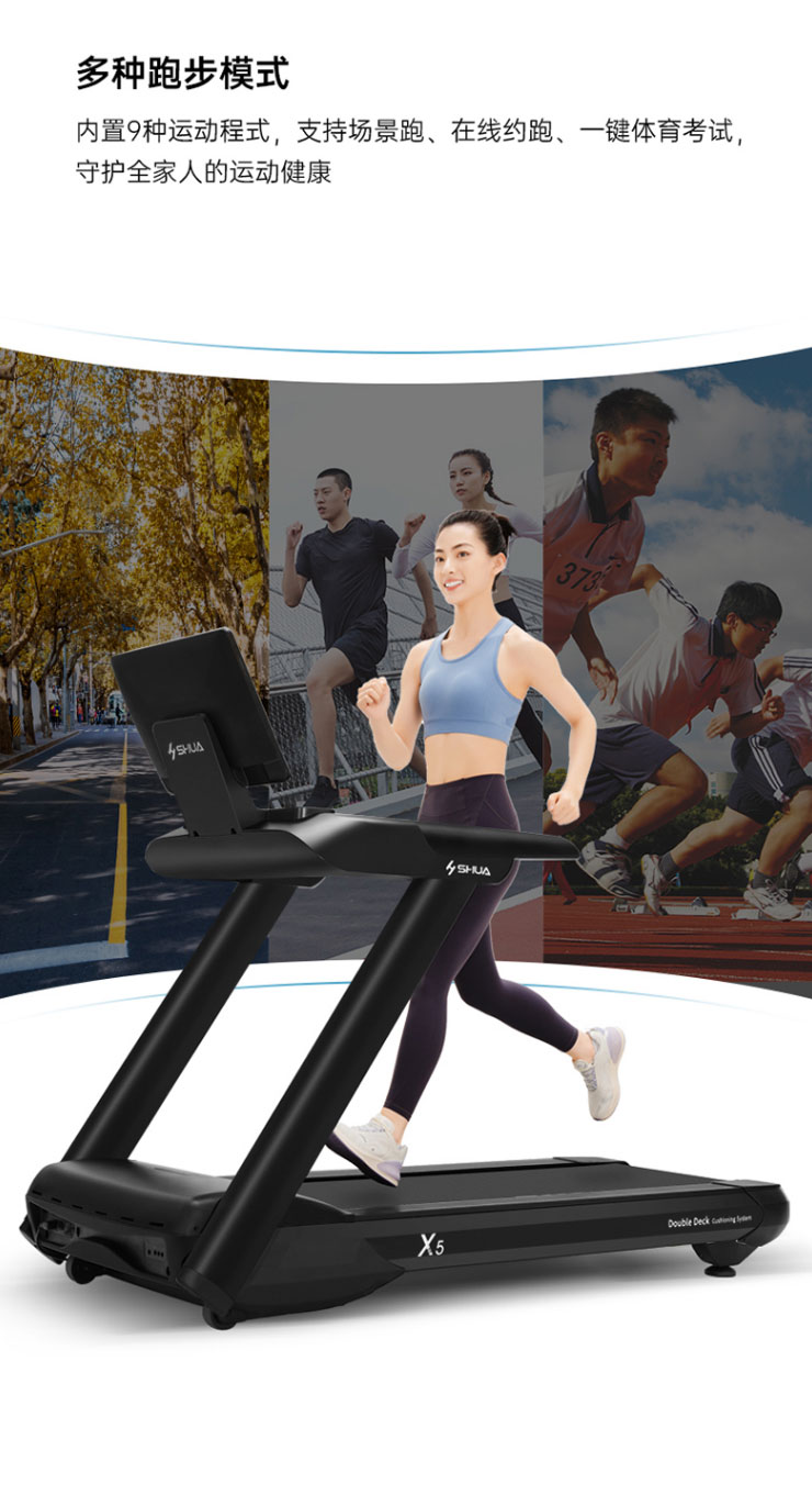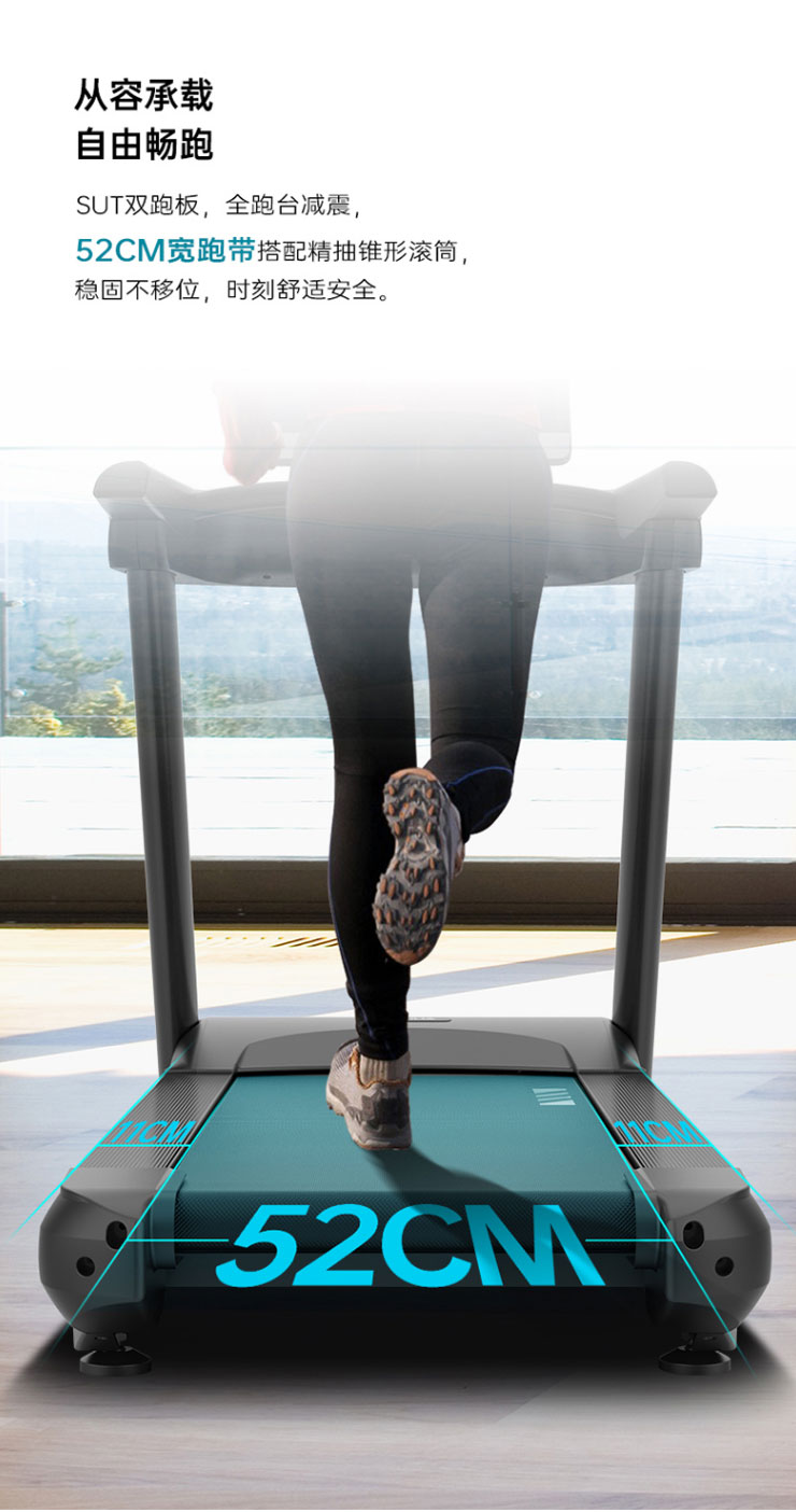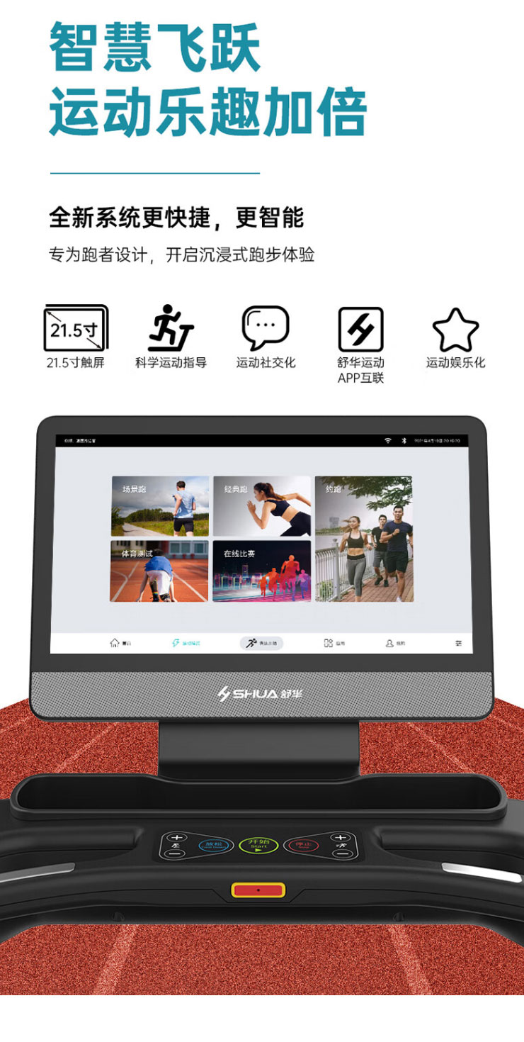 内置程序:搭载快盈VIII跑步机系统3.0 :4种程式(5km 往返、间歇、登山、燃脂)+体育考试+倒计模式:时间/距离/ 卡路里+在线约跑+地图跑+快盈VIII运动+应用软件