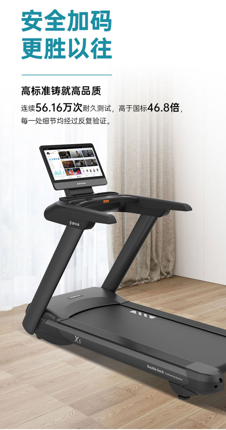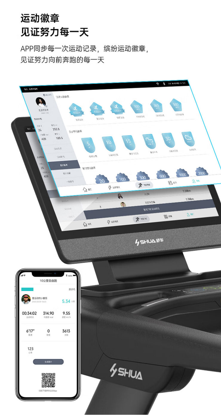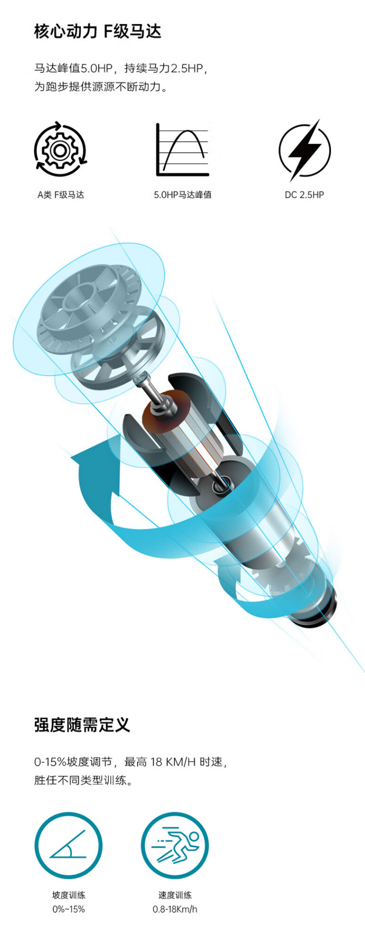 内置程序:搭载快盈VIII跑步机系统3.0 :4种程式(5km 往返、间歇、登山、燃脂)+体育考试+倒计模式:时间/距离/ 卡路里+在线约跑+地图跑+快盈VIII运动+应用软件