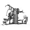 快盈VIII四人站综合训练器SH-G5205,一机四位多用途,减小占地面积的同时,可满足四个用户同时使用,而无需购买4台产品,大大的提升了产品的性价比及功能性。涵盖上肢、下肢、胸、臀、核心肌肉群等肌群的锻炼,结合随机附带配件,可组合多种训练方式,充分训练人体各处肌群。