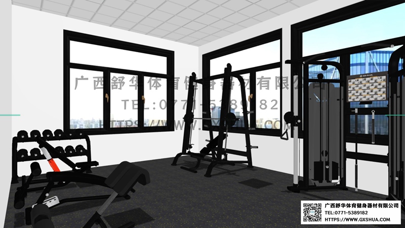 场地尺寸:6m*6.65m(有氧器材区)+4.85*6.65(力量训练器材区)