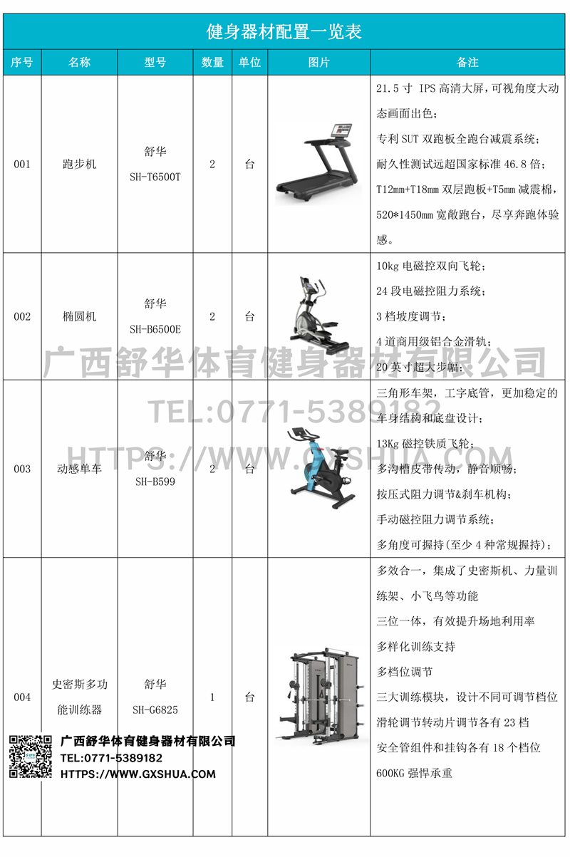 1.快盈VIIIX5 Pro跑步机SH-T6500T*2台-采用高性能电机,提供稳定动力,支持长时间高强度运行,适合长时间有氧训练,跑台宽敞,提供舒适跑步空间,减少运动中的束缚感,适合不同体型用户。配备先进减震系统,有效缓解跑步对关节的冲击,降低运动损伤风险,内置智能控制系统,支持多种预设程序和个性化训练计划,用户可根据需求调整速度和坡度,满足多样化训练。
