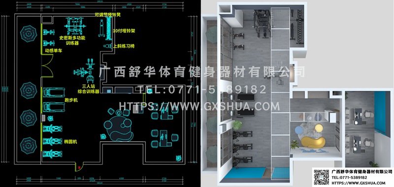 此方案要求面积小于111m²,适用于企事业单位、酒店会所、楼盘社区、工作室、学校等健身场所,能满10-15人同时健身使用。(方案根据场地空间大小、预算、产品需求等进行配置仅为启发性参考)