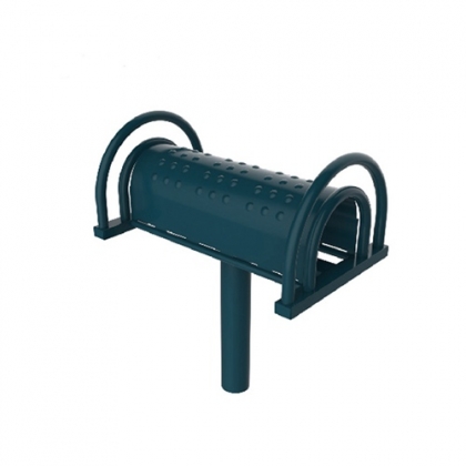双手抓住训练器两侧扶手,腰部向后靠在其弯曲板上,身体尽量向后做伸展运动