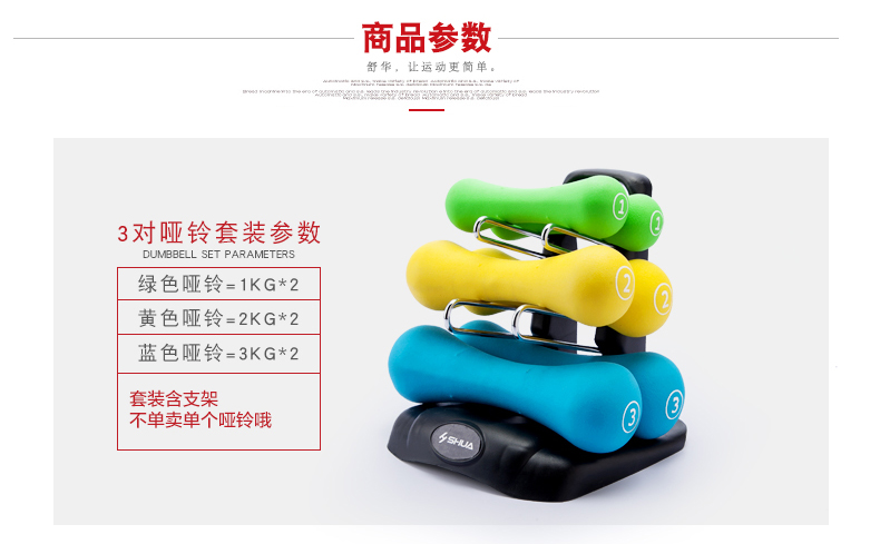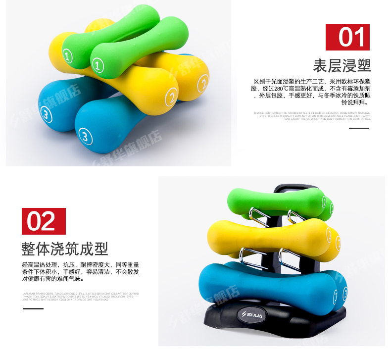 快盈VIIISHUA浸塑哑铃套装 家用男士女士健身时尚环保健身运动器材
