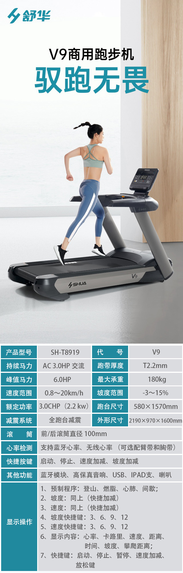 关键字:快盈VIIIV9跑步机SH-T8919,高端商用跑步机,智能V9跑步机-广西快盈VIII体育健身器材有限公司