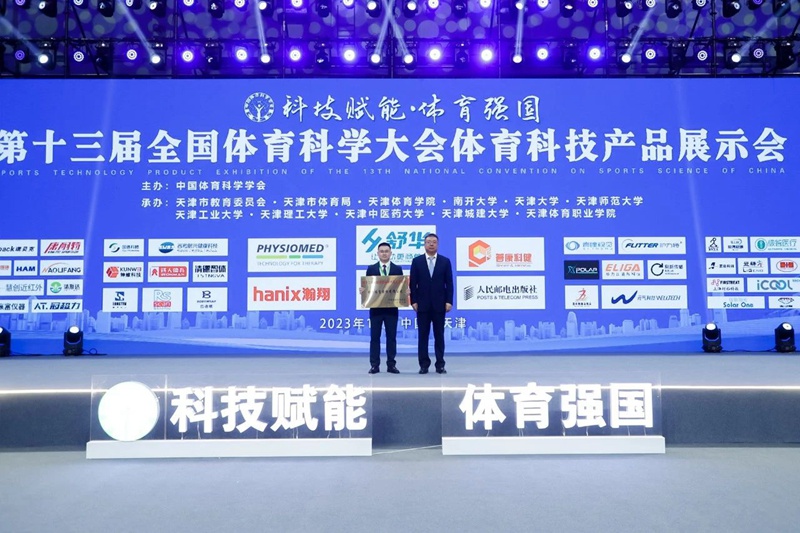 在11月3日大会体育科技产品展示会开幕式上,中国体育科学学会领导向快盈VIII体育颁发第十三届全国体育科学大会主赞助商牌匾及荣誉证书。