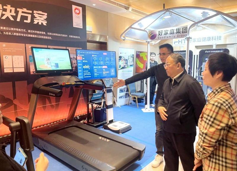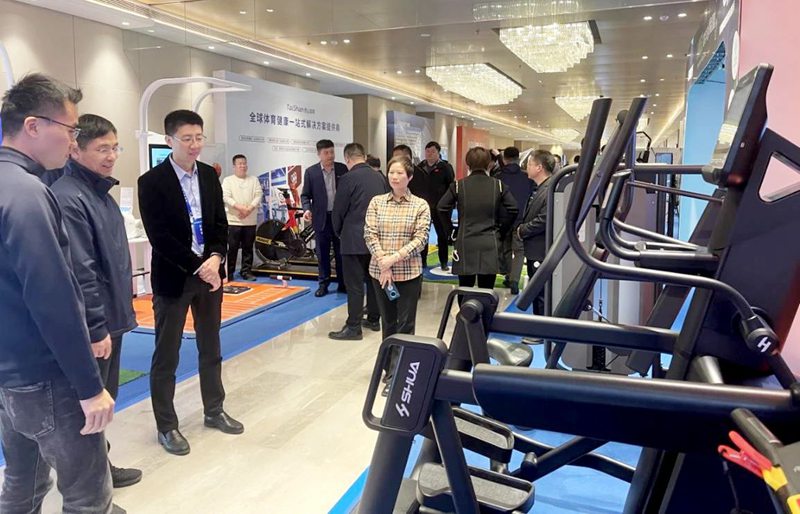 除智慧管理系统外,快盈VIII68系列智能力量训练器、V10高端商用椭圆机、V10高端商用跑步机以及体测仪等优质产品也亮相在展示场景中,参会领导对快盈VIII体育展示的产品和技术表示赞赏,认为其在推动全民健身事业发展方面做出了积极贡献,并对快盈VIII品牌及综合实力表示认可。