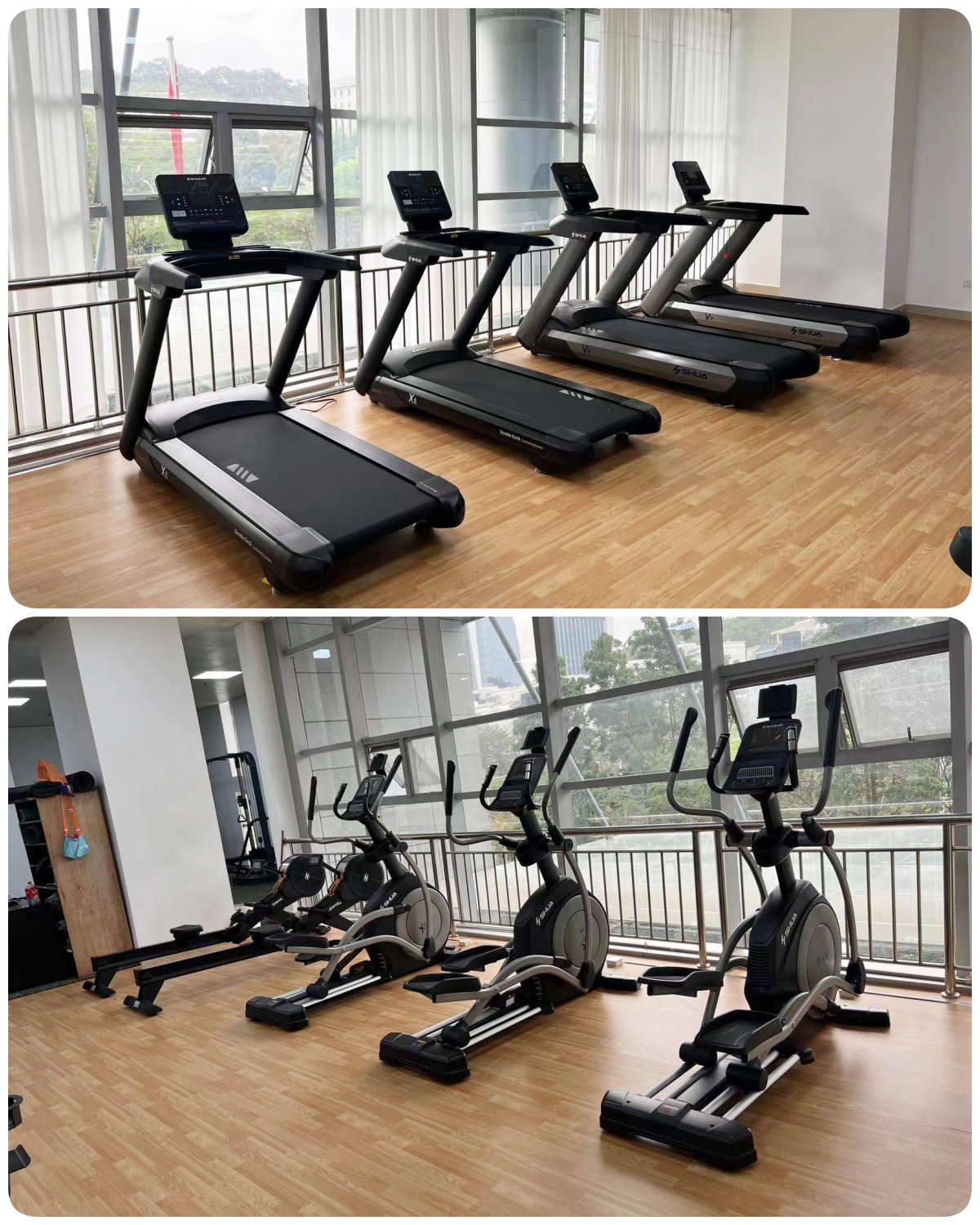 有氧区域主要配置了快盈VIIIX5跑步机、X5-E椭圆机、划船器SH-R8100、动感单车。有氧器材可以改善心肺功能、促进血液循环、提高新陈代谢、提升身体素质、提供了多样化的锻炼选择、能有效缓解工作压力和焦虑情绪,从而提高注意力和专注力,使员工在工作中更加冷静、高效。